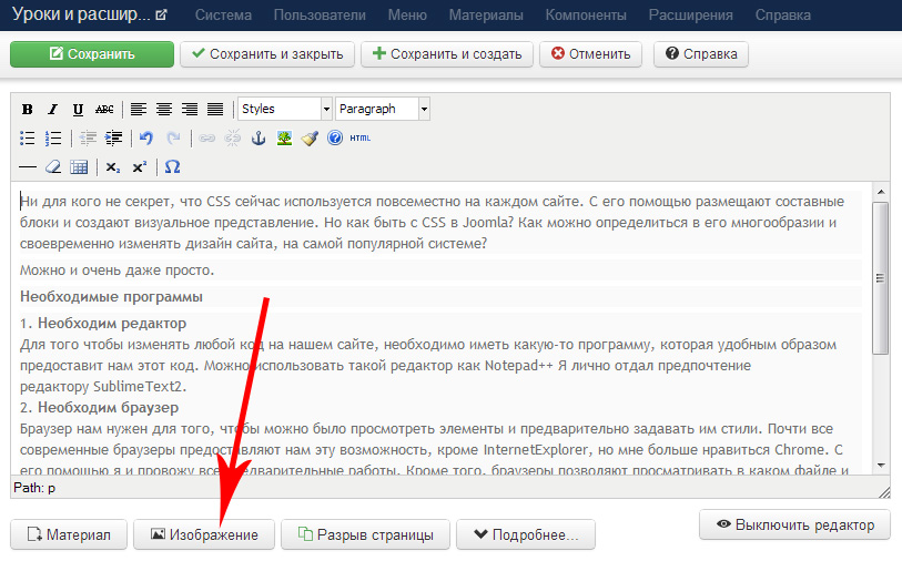 Изображения играют очень важную роль на сайтах любой тематики. Особую важность изображения представляют на страницах с большим текстовым содержимым. В Joomla, как известно 98% содержимого создаётся благодаря материалам. Поэтому при создании именно материалов, нужно заботиться о должном наличии изображений, уметь своевременно их добавлять.