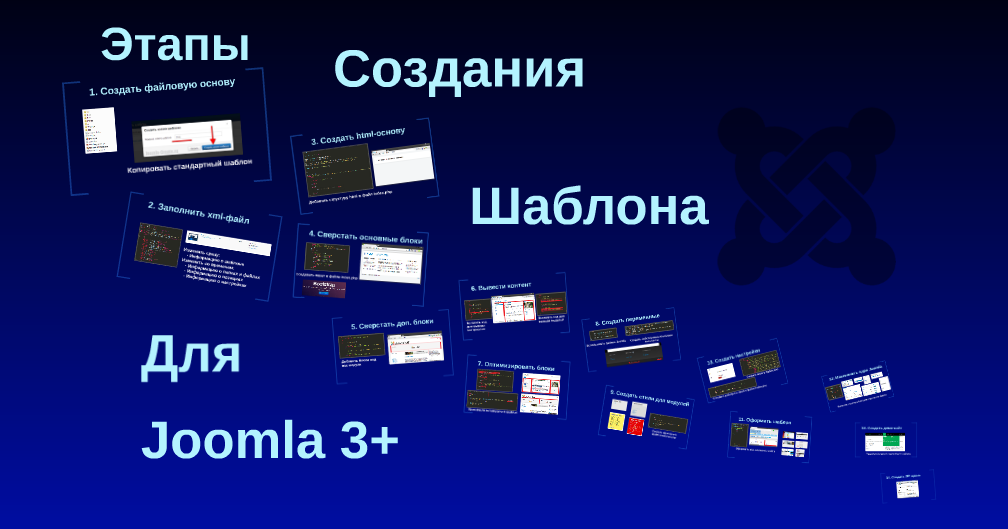 Создание шаблона на Joomla - уникальный процесс, который требует определенных знаний и навыков, Но при этом данный процесс строго опирается на базовые навыки, а уже потом на особенные нюансы разработки на Joomla.