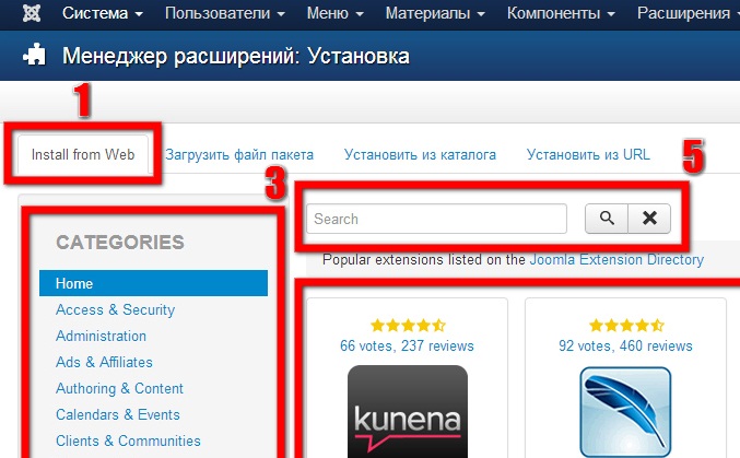Поиск и загрузка расширений в Joomla 3.x