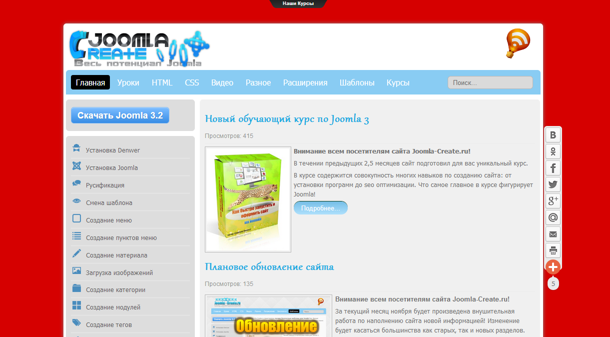 Уникальный курс от Joomla-Create.ru о том, как за считанные минуты можно самостоятельно изменять дизайн любого сайта.