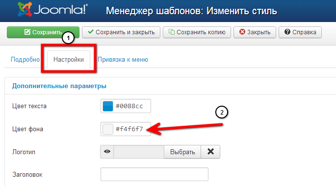 3. Переходим в настройки шаблона и нажимаем на пункт: "Цвет фона".