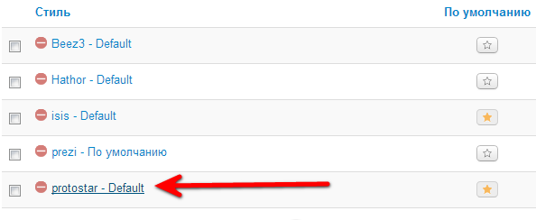 2. Выбираем шаблон Protostar (тот, что со звездочкой).