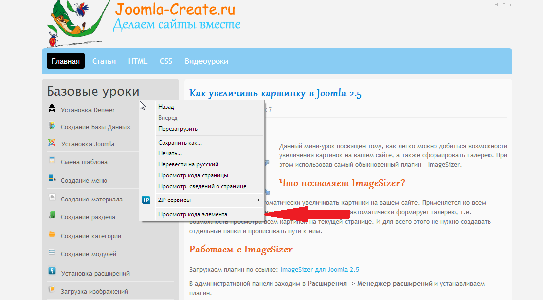 Первым делом нужно определится, что мы хотим изменить. Допустим мы определились, и хотим заменить серый цвет левого меню. Наводим мышкой на область этого меню с серым цветом и жмем правую кнопку мыши, далее в появившемся контекстном окне жмем «Просмотр кода элемента»