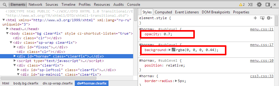 Группа стилей придающая вашему шаблону профессиональный вид. Прозрачность задаётся либо напрямую при использовании стиля opacity, либо используется определённый код цвет RGBA с заданием его прозрачности. Отличие их в том, что свойство opacity задаёт прозрачность сразу для всего элемента, а RGBA только для фона/цвета.
