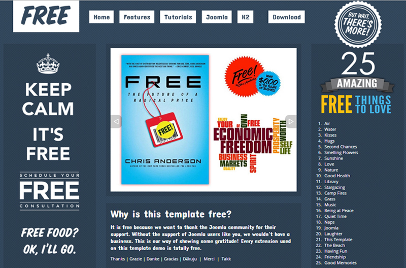 На сайте Joomla-Create.ru представлены лучшие бесплатные шаблоны для Joomla 3.x. Данные шаблоны распространяются по бесплатной лицензии и не имеют вредоносных вставок. Все шаблоны можно предварительно просмотреть нажав "Демо", понравившиеся можно скачать по прямой ссылке.