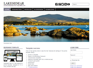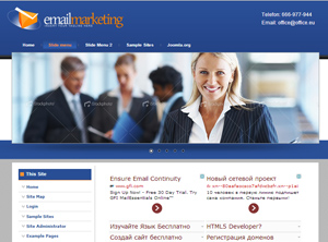 Бесплатный шаблон синего цвета для Joomla 3. Множество позиций. Макет - левосторонний. В настройках доступно изменение телефона, галереи, логотипа и кнопки "вверх".