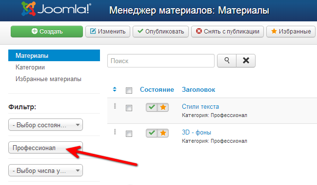 Выбрав, только лишь уровень доступа для материалов, мы добились того, что материалы из категории "Профессионал" больше не отображаются всем подряд. Только зарегистрированным пользователям.
