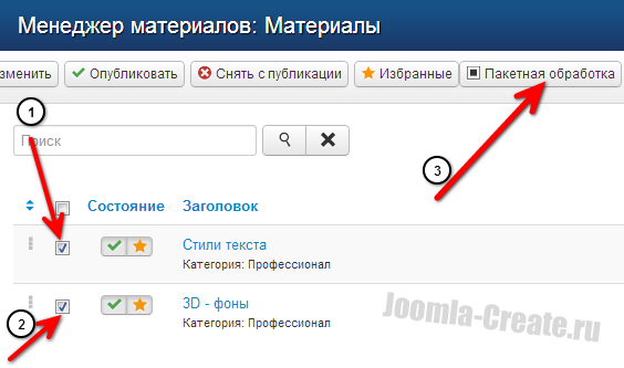 4. Выделяем необходимые материалы и нажимаем кнопку "Пакетная обработка".