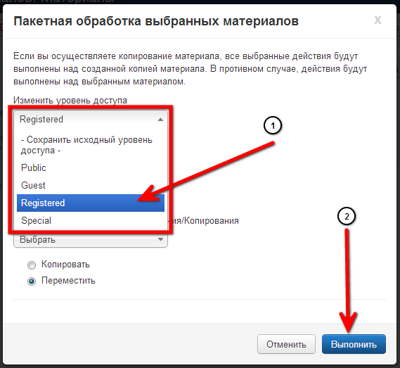 1. Чтобы настроить права доступа, нужно выбрать материалы, к которым будем закрывать доступ.