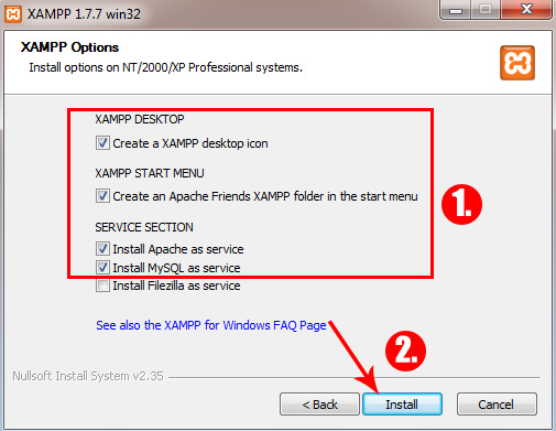 На следующем этапе, нужно обязательно выбрать поля: Install Apache и Install MySQL. Это жизненно важные компоненты для работы нашего сайта.