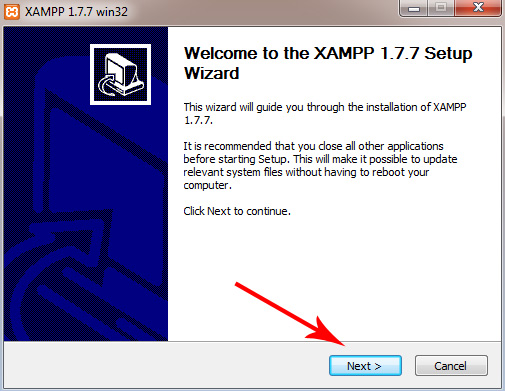 В первом окне соглашаемся с установкой веб-сервера на английском языке. Язык для веб-сервера не играет роли, т.к. контактировать мы с ним будем только, по нажатии кнопки запуска - все интуитивно понятно.