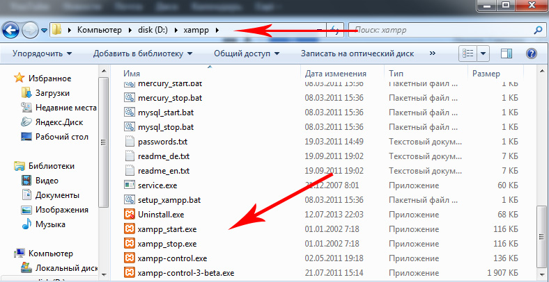 В дальнейшем для быстрого запуска веб-сервера можно запускать файл - xamp_start.exe.