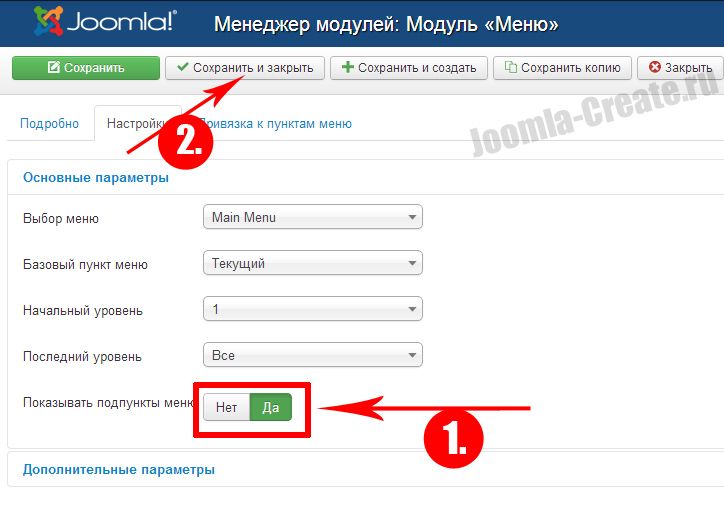 3. После того, как будет работать верхнее меню, нужно включить возможность показа пунктов меню, делается это в настройках модуля: