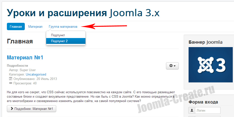 В Joomla 3 можно создавать самые разные стили для верхнего меню и все они работают с выпадением. В этом уроке мы рассмотрим, то как можно быстро настроить эту возможность.