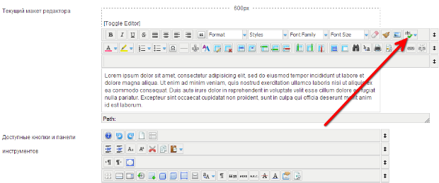 5. Размещаем кнопку "abc" в Текущий макет редактора.