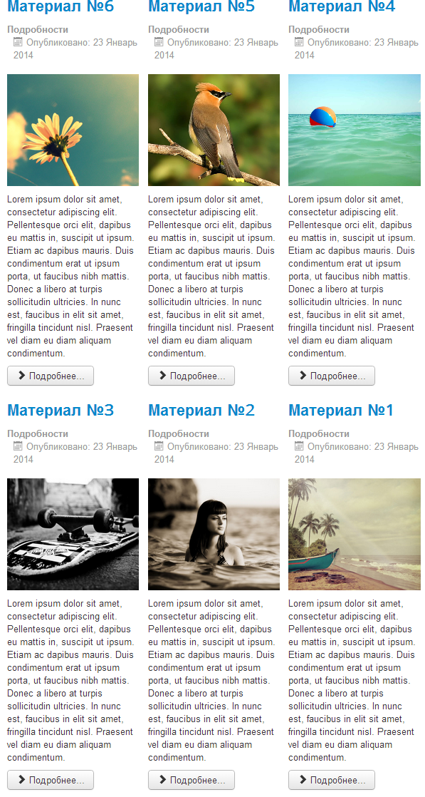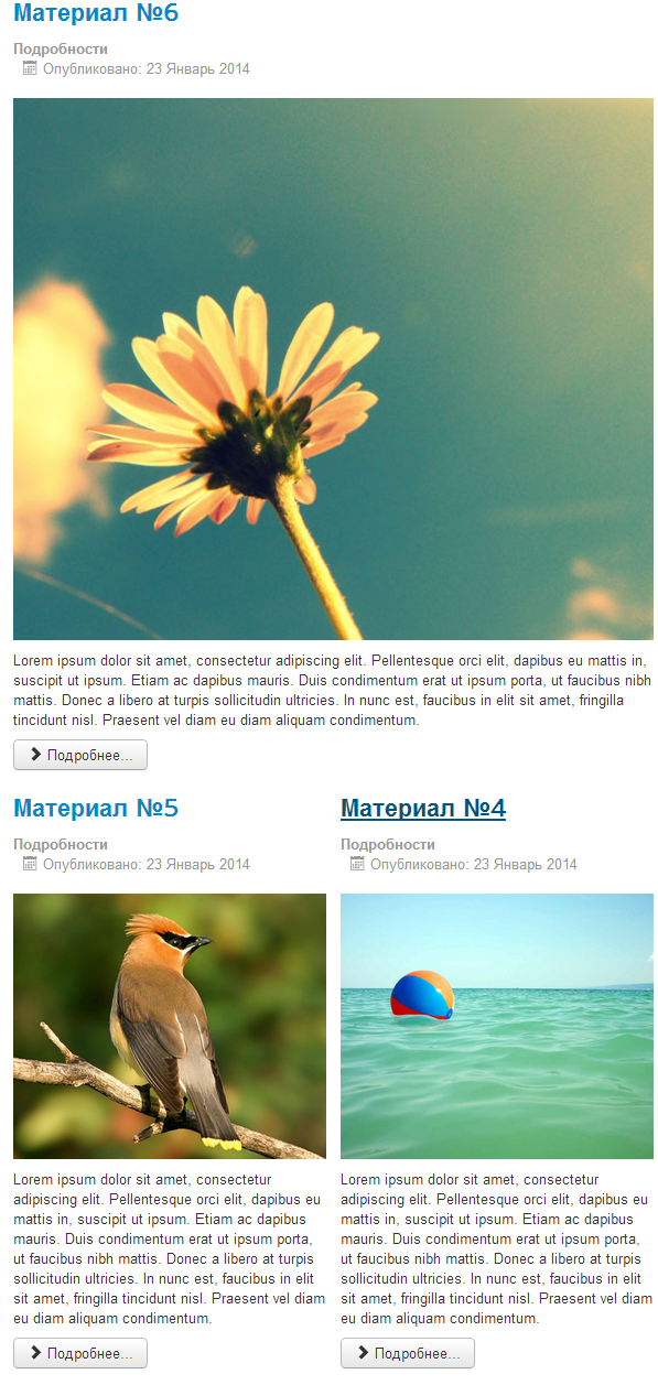 В Joomla 3 благодаря нескольким настройкам можно задавать разнообразные способы оформления материалов. В этом уроке будут разобраны наиболее популярные.