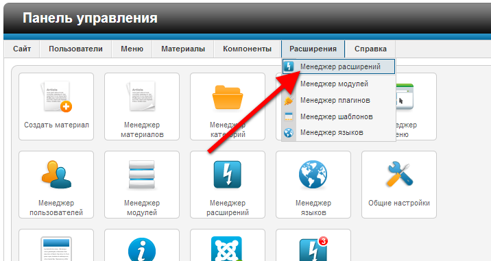 1. Необходимо перейти в раздел "Менеджер расширений".