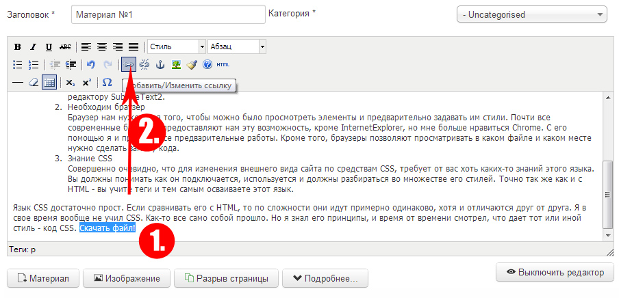 1. Ссылка на файл создаётся также, как и любая другая: при помощи кнопки с цепью.