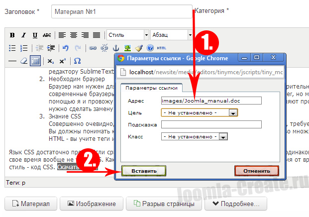 2. Однако в отличие от ссылок из Интернета, ссылки на собственные файлы мы создаем вручную. Для этого прописываем следующий адрес: images/file_name.format.