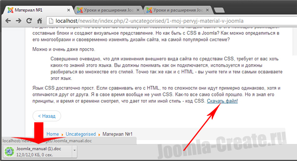 Административная панель Joomla позволяет очень быстро загружать любые файлы с компьютера. Об этом мы знаем из урока - Загрузка и сохранение файлов в Joomla 3. Также нам известен способ вывода изображений на сайте. Но как же быть с другими файлами, к примеру pdf, doc и другими, которые необходимо представить пользователю для скачивания? Об этом в данном уроке.