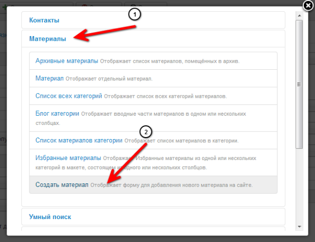 Добавление материала через сайт