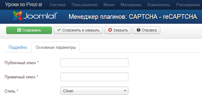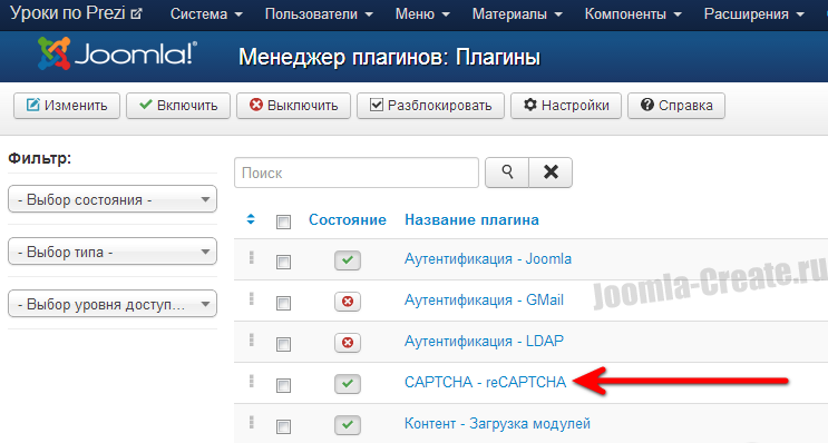 В Joomla капча настраивается за несколько шагов, которые мы сейчас рассмотрим.