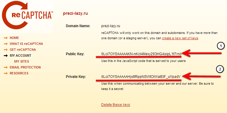 5. У плагина есть две важные настройки - публичный и приватный ключи.