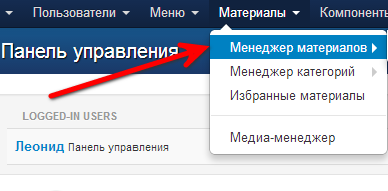 1. Переходим в один из компонентов Joomla, например, менеджер материалов.