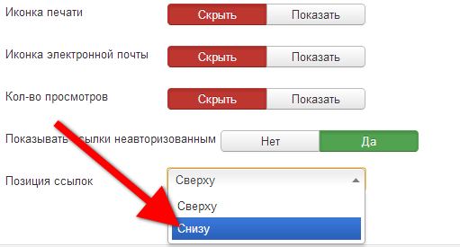 5. Переключить параметр позиций ссылок на значение: "Снизу".