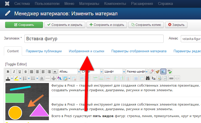 1. Перейти во вкладку: "Изображения и ссылки".