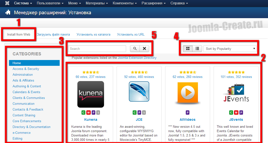C новой версией Joomla 3.2+ поиск расширений осуществляется прямо из административной панели, где в дальнейшем можно все эти расширения скачать и установить. И сейчас мы подробно рассмотрим данный алгоритм.