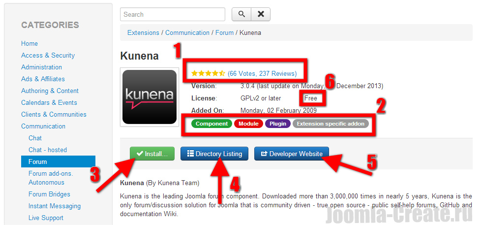 4 - Страница с описанием расширения на официальном сайте Joomla!