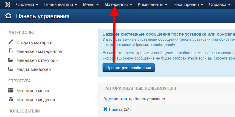 Материалы - основное содержимое сайта. Порядок расположения этих материалов является очень важной составляющей и требует правильной настройки.
