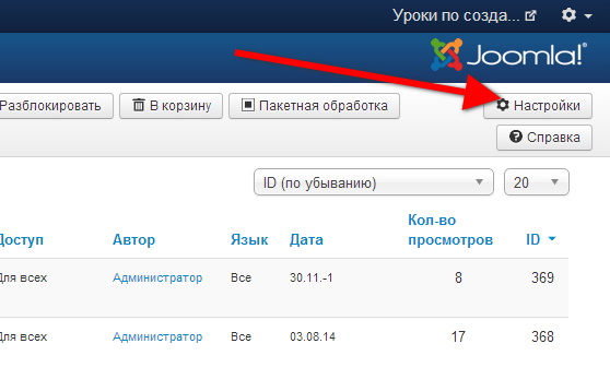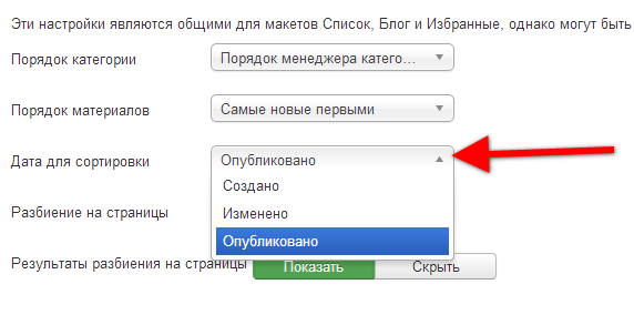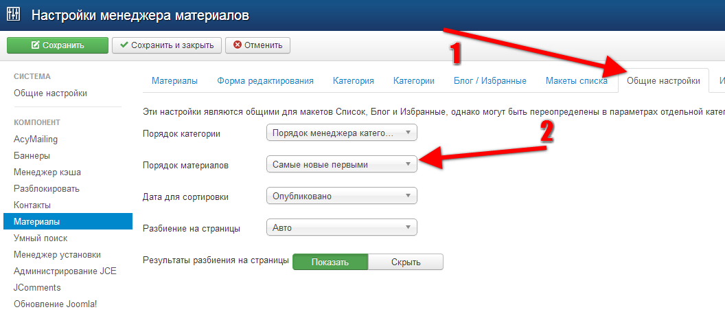 Для настройки порядка сразу для всех материалов сайта, необходимо: