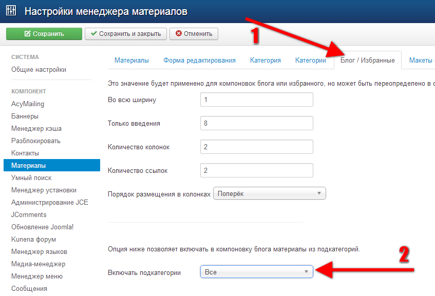 Включение материалов из подкатегорий часто требуется для порталов с большим количеством разделов и применяется сразу для всех материалов сайта.
