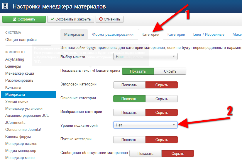 В таком случае, на страницах сайта (под материалами) не будут отображены ссылки на подкатегории.