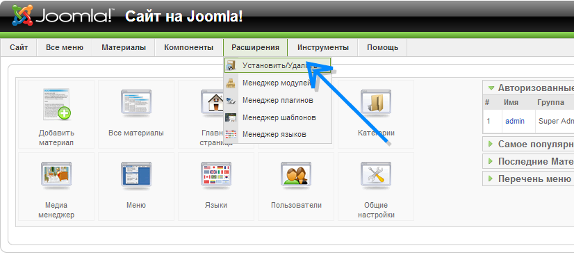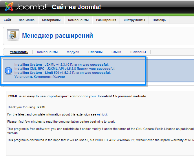2. Установка компонента для старого сайта на Joomla 1.5