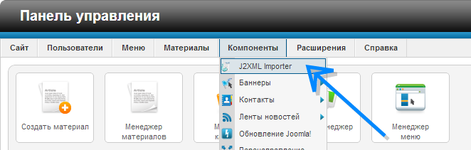 Заходим в компонент J2XML Importer.