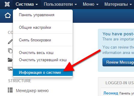 Чтобы узнать путь корневой директории, необходимо перейти в административный пункт "Информация о системе".